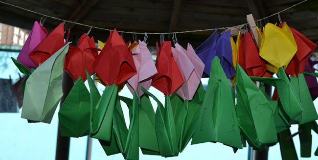 La grande lessive annonce le retour du printemps ! Jeudi 25 mars, de nombreuses classes ont exposé leurs productions pour fêter l’arrivée du printemps. C’était le retour de la Grande lessive consacrée à cette occasion aux « Jardins suspendus « . Bravo à tous les artistes pour leurs idées, les couleurs et la joie qu’ils ont amenées…