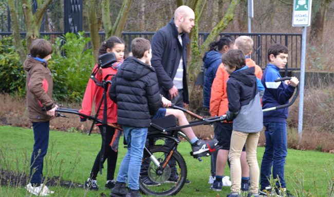 Le début d’une belle aventure Les élèves de la classe de CM2C ont rencontré Sébastien Naulais qui a créé l’association Stichting Onbegrensd avontuur. https://www.onbegrensdavontuur.nl/ Celle-ci organise des randonnées pour personnes handicapées physiques grâce à l’aide de bénévoles. Il a répondu à nos questions et nous a expliqué comment fonctionnait la joëlette, une chaise à une…